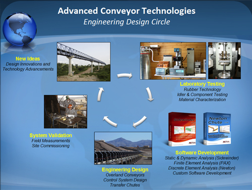 Developed a wide range of in-house test equipment. From belt troughability testing, to a temperature controlled variable frequency idler testing rig, to a wide range of different material testing equipment. If it’s part of a conveyor, we want to know everything we can about it! Research and development are key to advancing conveyor technology. Combined with a plethora of real world field measurements, completes the design circle from concept to finished system.
